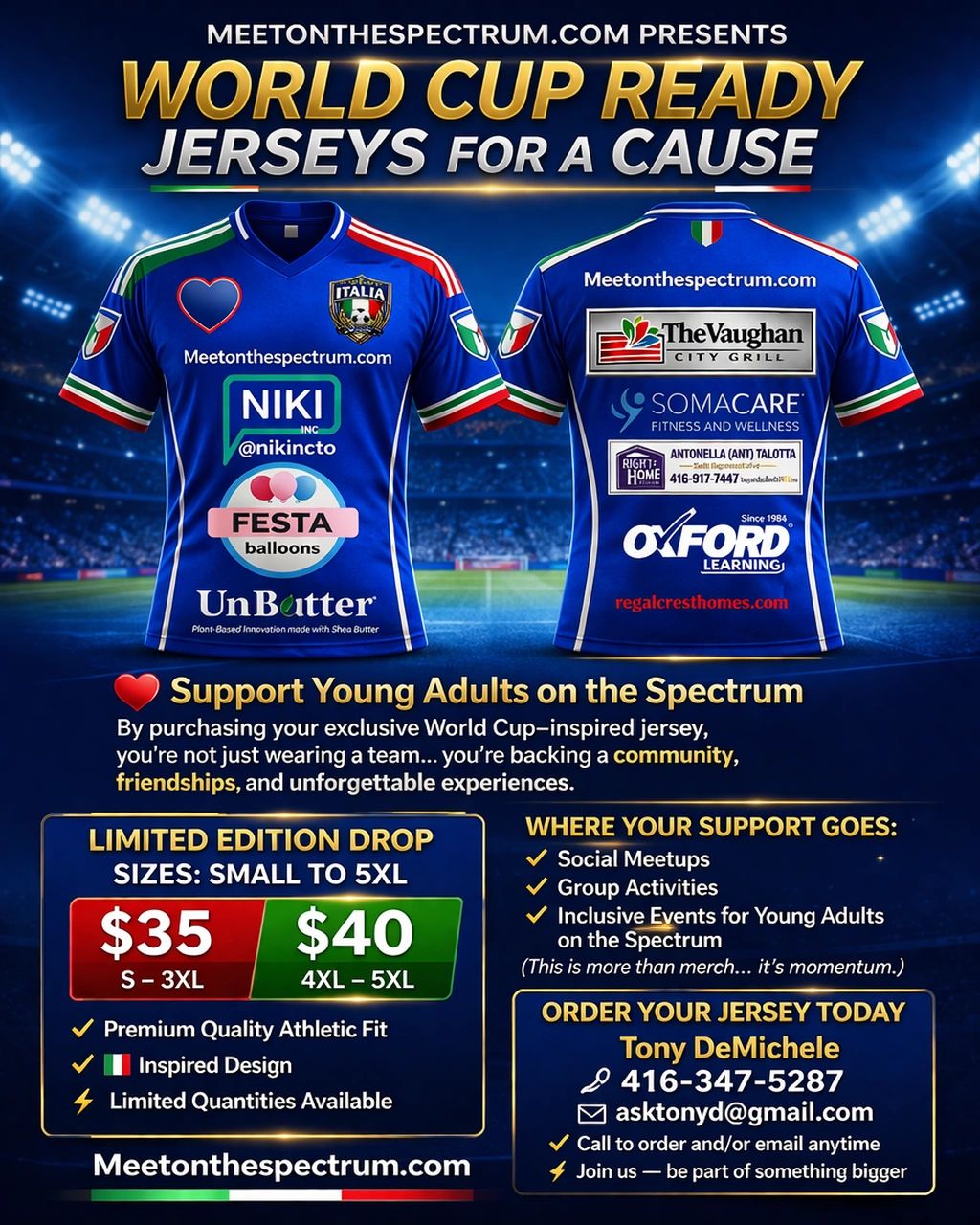 Support our Meet-ups and Activities !!! Please consider Purchasing a World Cup Jersey from our Sponsors, Donating to our cause that will go direct to our functions and events !! $35 to $40 Donate to us any amount you like $ 20.00/ $ 50.00 / $ 100.00. Thank you so much !! ( etransfer to asktonyd@gmail.com for sending )